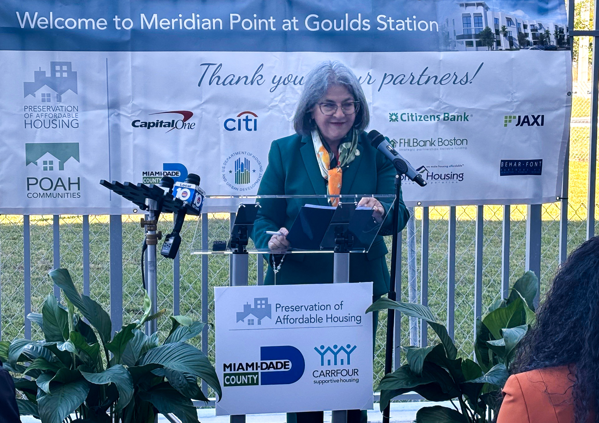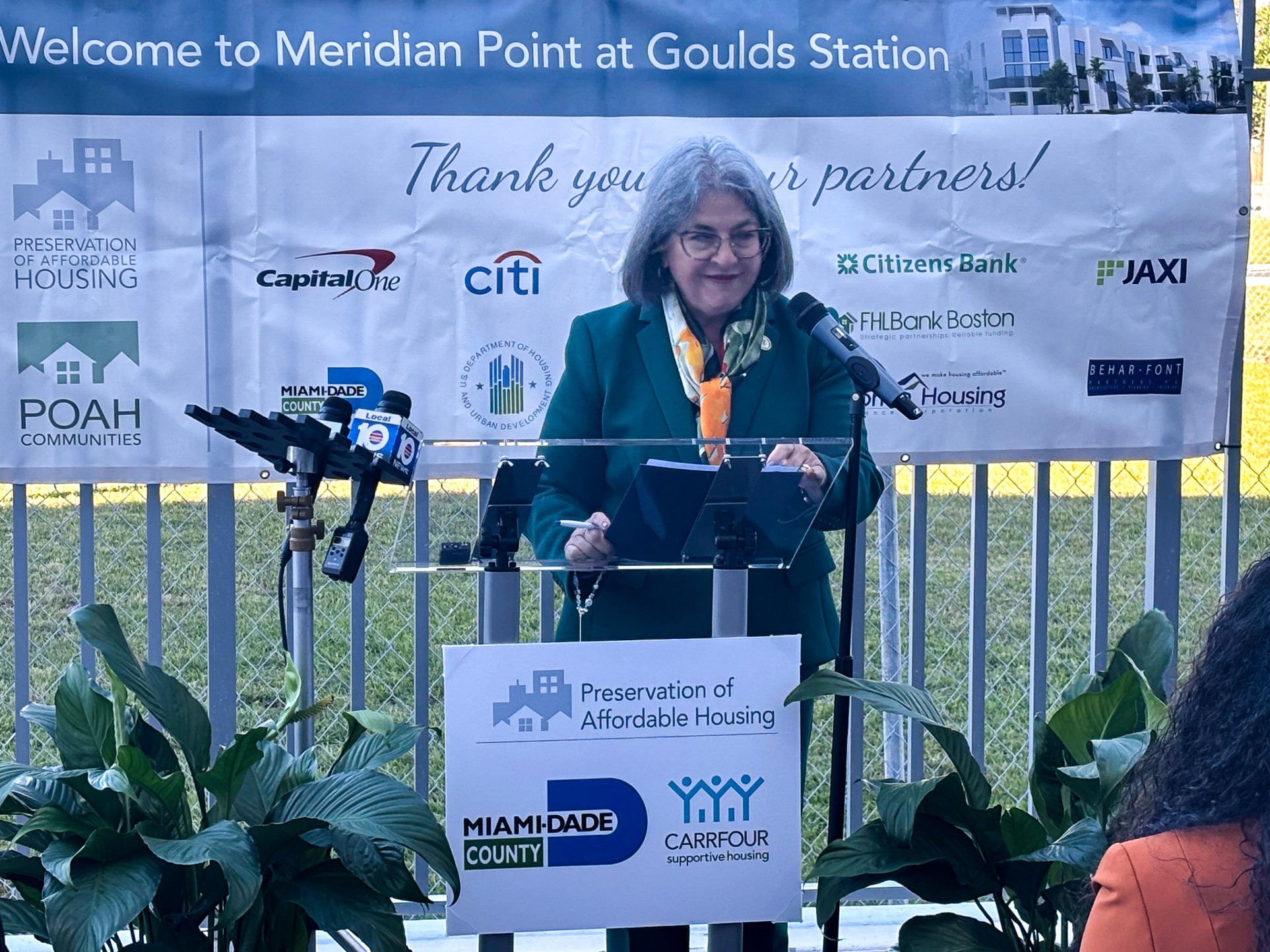 Meridian Point at Goulds Station is a new construction affordable housing property at 11850 SW 216th Street and 21725 SW 119th Avenue. Completed in fall of 2024, it features 113 one- and two-bedroom apartments for families with incomes ranging from 30% to 80% of Area Median Income (AMI).